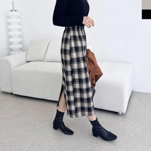 [오너클랜]인기상품 런던 체크 기모 안감 도톰 H라인 롱 스커트 뒤트임 여성용 [WFLKZLP_260304]