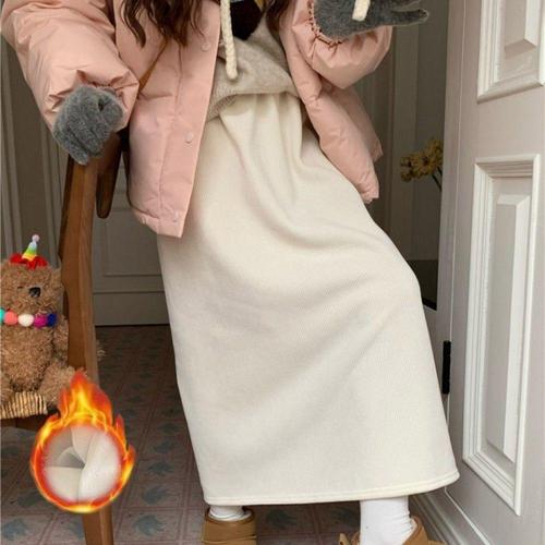 여자 2컬러 기모안감 겨울 밴딩 H라인 롱스커트 골덴 WFLQ856
