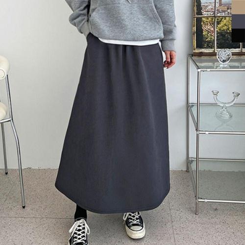 여성 겨울 기모 안감 골지 밴딩 롱 스커트 치마 3컬러