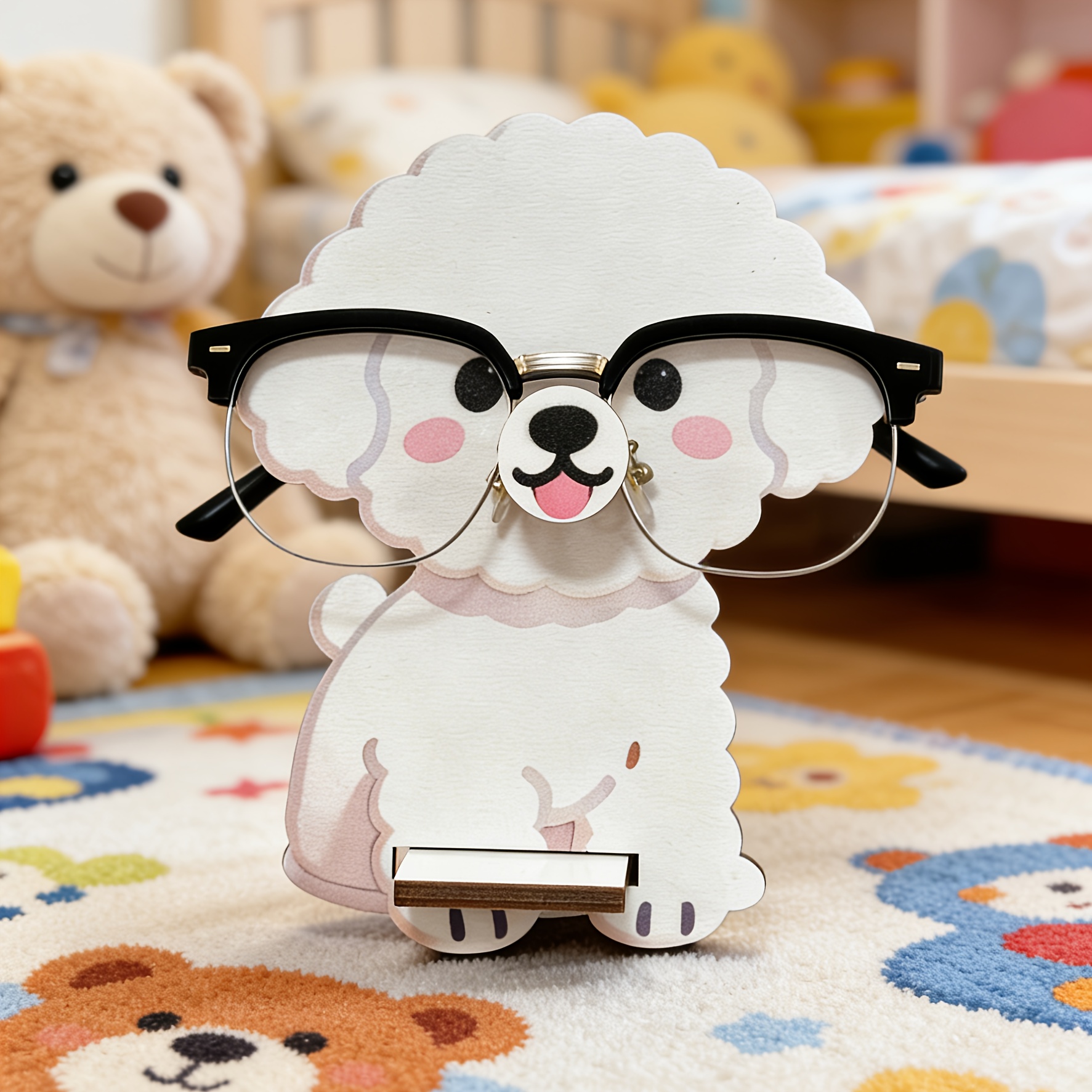 TEMU 1 수제 나무 귀여운 비숑 프리제 안경 케이스 | 스타일리시한 안경 정리함과 매력적인 조각상, 오리지널 디자인, 침대 옆 테이블 및 홈 오피스에 적합, 일반 안경 및 돋보기 안경 호환