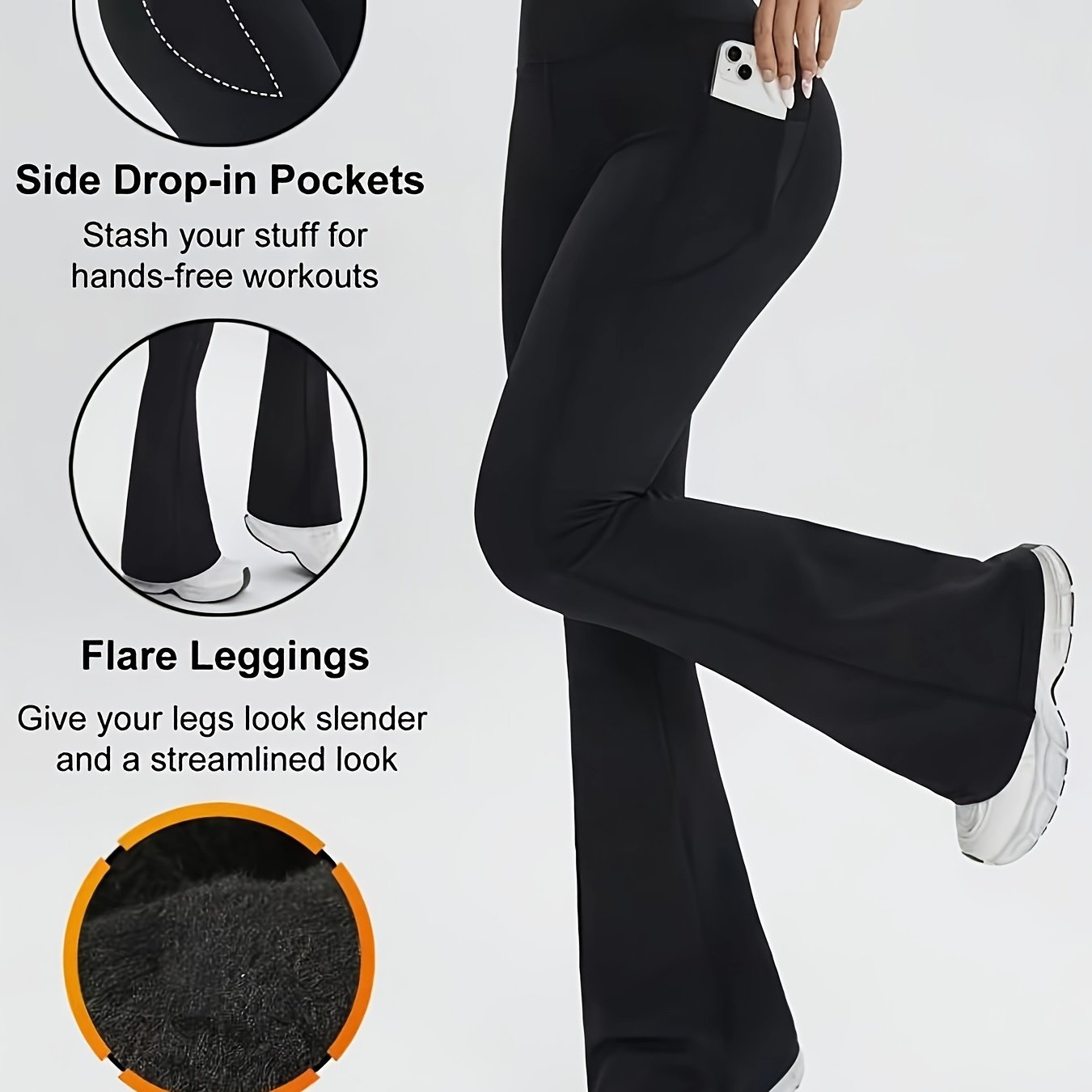 TEMU 여성용 하이웨이스트 겨울용 따뜻한 플레어 팬츠 - 두꺼운 보온 탄력 허리밴드, 추운 날씨용 블랙 스트레치 레깅스, 캐주얼 및 세미포멀 의상, 손세탁 가능, 베이스 레이어 팬츠,반정장 복장,여성용 스트레치 팬츠,단열 바닥, 디자인,플레어드 레그,두꺼운 소재,신축성 있는 원단,추운 기후 거주자
