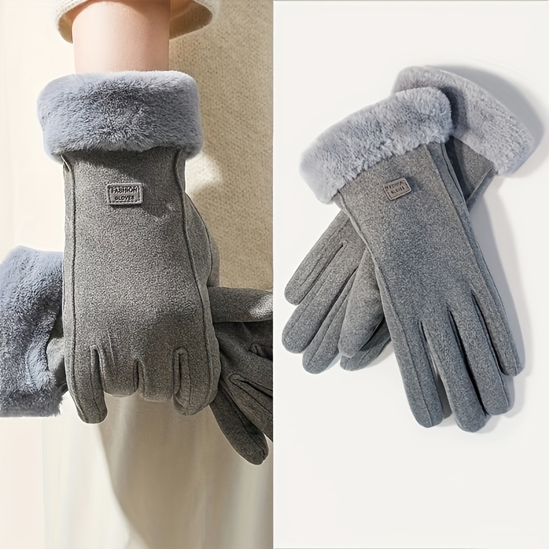 TEMU 여성용 가을 겨울 야외용 따뜻한 장갑, 두꺼운, 터치스크린 호환, 4가지 색상, 전체 손가락, 캐주얼 스타일, 단색, 주말 캐주얼 웨어에 적합, 추운 날씨에 손가락을 따뜻하게 지키세요