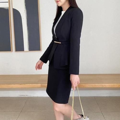 [다잇템_패션]여자 일자 출근룩 편한 슬림 콤비 알바 치마