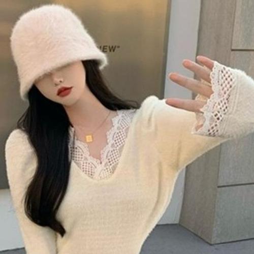 [엄지척]소매 넥라인 레이스 브이넥 앙고라 블라우스_19643739_667501