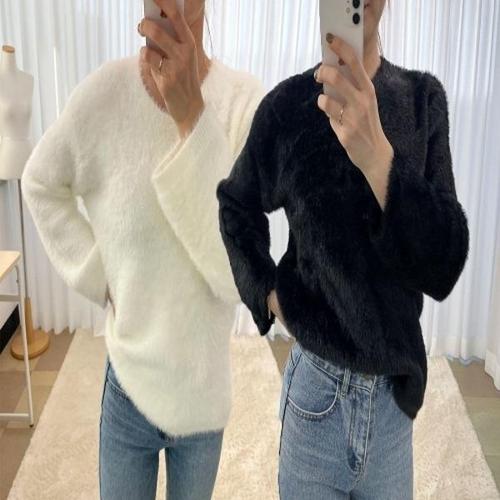 [다잇템]여자 앙고라 포근 볼드숄더 미니멀리즘 니트