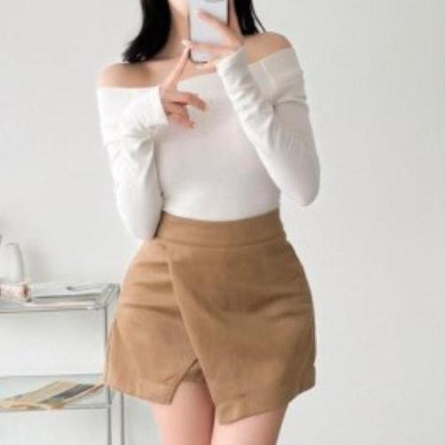[신상오픈런]여성 심플 앙고라 오프숄더 따뜻한 무지 긴팔 니트