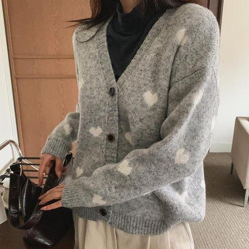 [신상오픈런]여성 앙고라 하트 디자인 루즈핏 브이넥 니트 카디건