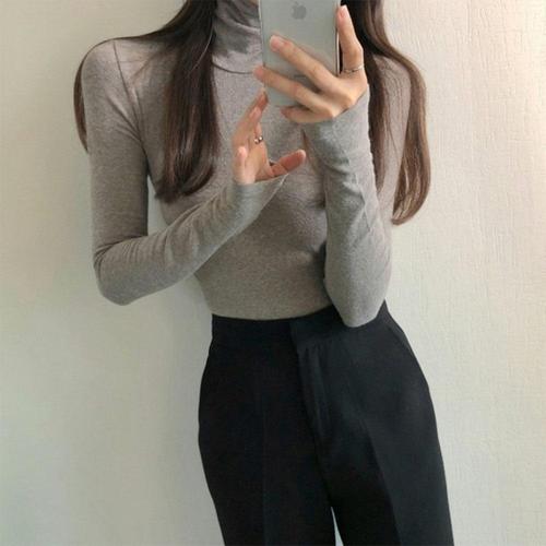 [옷자락] 여성 앙고라 목폴라 긴팔 이너티 슬림핏 스판