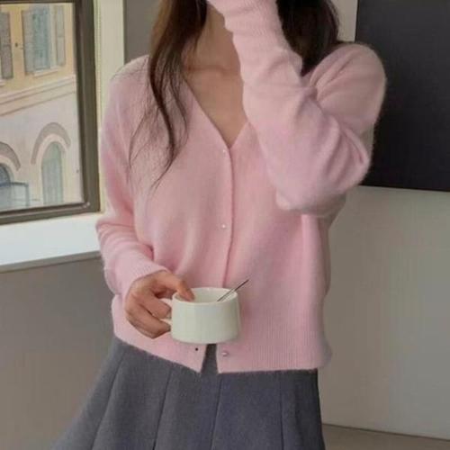 [다잇템][다잇템] 여성 엷은 스웨터 앙고라 카디건 V넥 진주버튼_23302973_588872