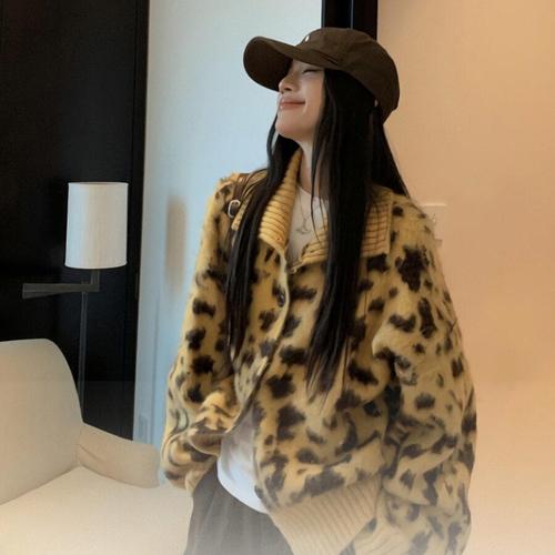 [디자이너몰]여성 가을 겨울 레오파드 앙고라 가디건