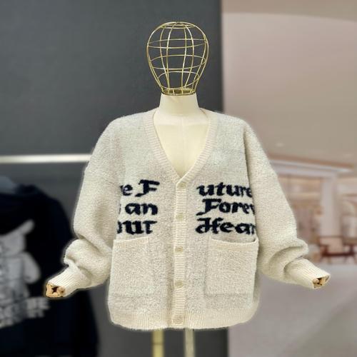[비바앤코코넛]커플룩 루즈핏 레터링 앙고라 브이넥 긴팔 니트 가디건