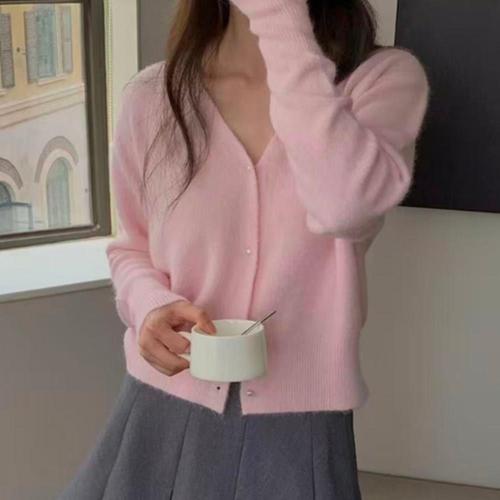 [JHQRLUPQ_53DC]간절기 니트 가을 앙고라 가디건 여성 봄