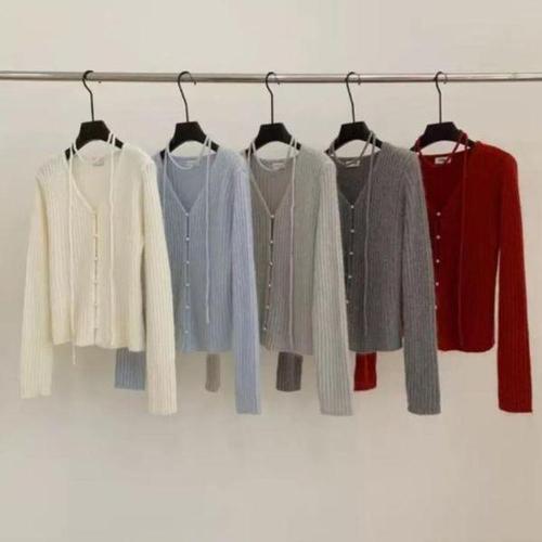 [셀럽하우스]앙고라 GCQK7635 슬랙스 크롭 가디건 브이넥 디자인 코디