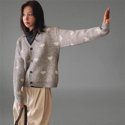 [신상오픈런]여성 앙고라 하트 디자인 루즈핏 브이넥 니트 가디건