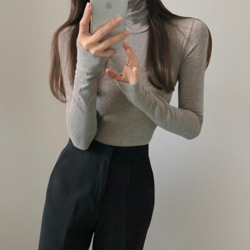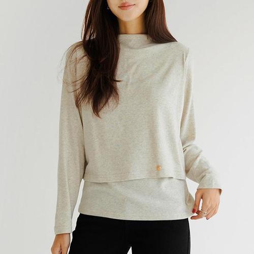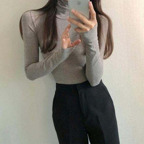 [다잇템]여성 코튼 일상 롱슬리브 앙고라 하이넥 티셔츠