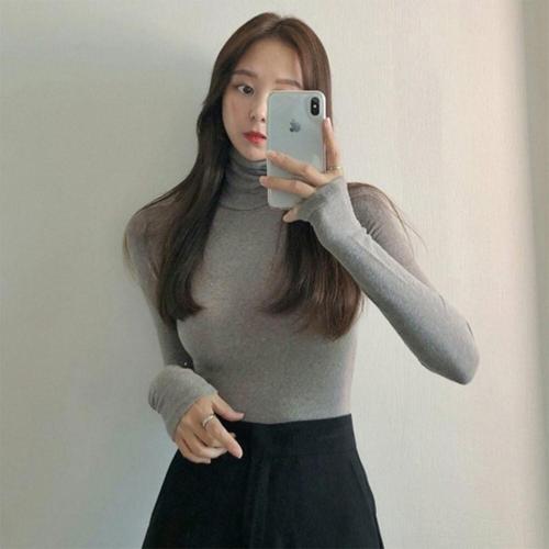 [옷자락]여성 일상 앙고라 면 폴라 긴팔 티셔츠