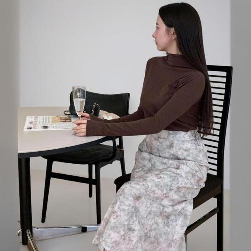 [옷자락] 여성 일상 앙고라 면 폴라 긴팔 티셔츠