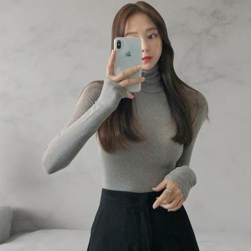 [다잇템]여성 신축성 앙고라 롱슬리브 하이넥 티셔츠