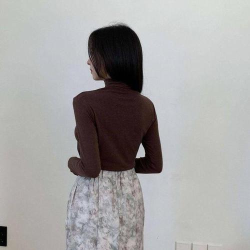 [다잇템]여성 일상 롱슬리브 앙고라 하이넥 코튼 티셔츠