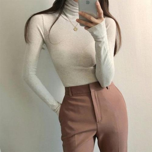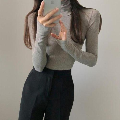 [신상오픈런]여성 앙고라 슬림핏 목폴라 긴팔 티셔츠 스판 이너웨어