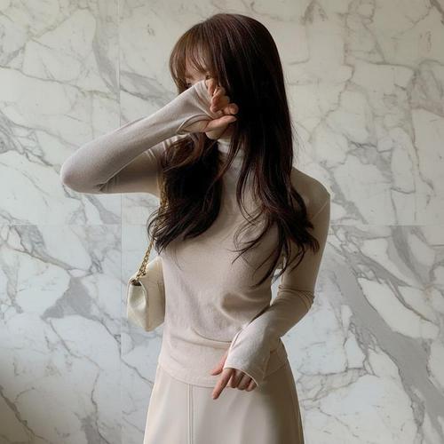 [옷자락] 여자 앙고라 목폴라이너 딱붙티 슬림 핸드워머 티셔츠