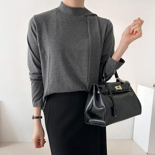 [옷자락]여자 부드러운 하이넥 앙고라 보온 클래식 티셔츠
