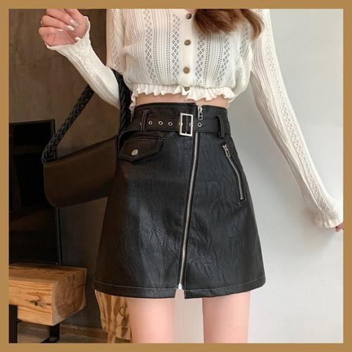 [굿쇼핑몰_의류]벨트포함 캐주얼 앞지퍼 가죽 스커트 치마