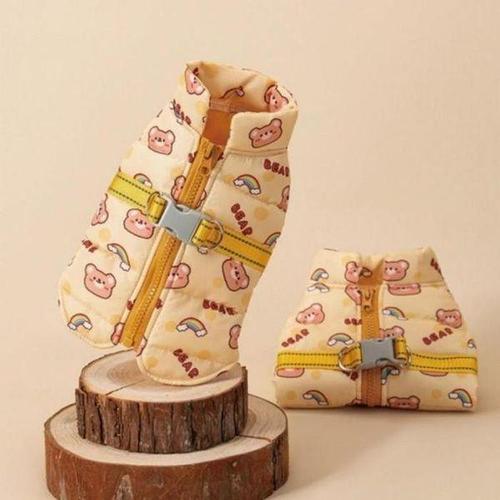 애견 패딩 조끼 소형견 겨울 반려견 강아지 하네스 패딩 방한복 외투 강아지산책 곰돌이 도트 산책