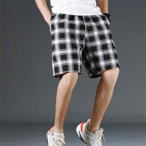 [다잇템]남자 코튼 면원단 격자 허리밴드 실내복 반바지 (10082927A)