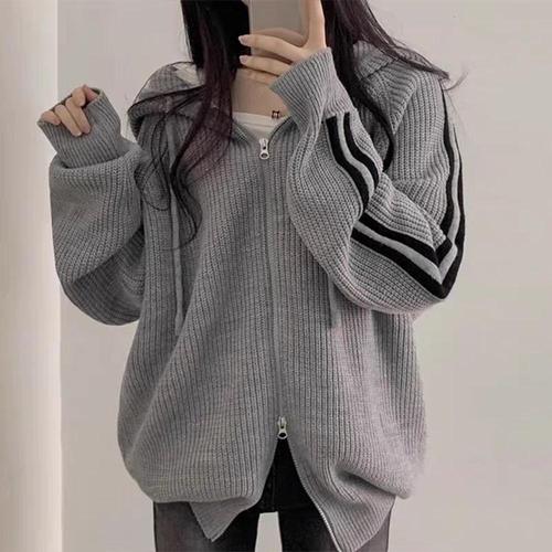 겨울 의류 남성용 라이트 럭셔리 니트 후드 가디건 스웨터 한국 빈티지 인기 지퍼 긴 소매 루즈 까마귀 니트웨어