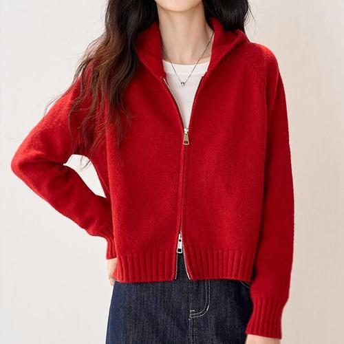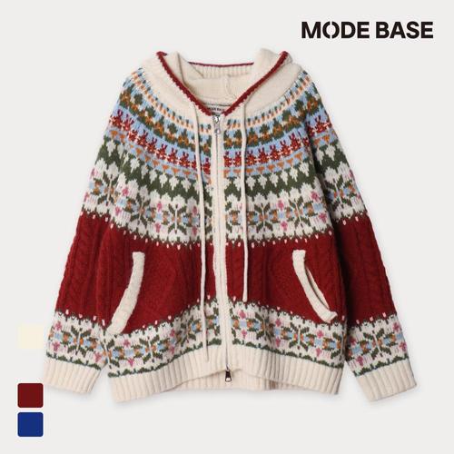 모드베이스 징글벨 후드 집업 니트 가디건 아우터
