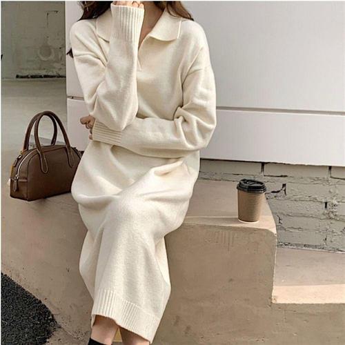 [오너클랜]인기상품 여성 카라니트 루즈핏 롱원피스 체형커버 겨울 이너 2색 [WFLK0HY_260302]