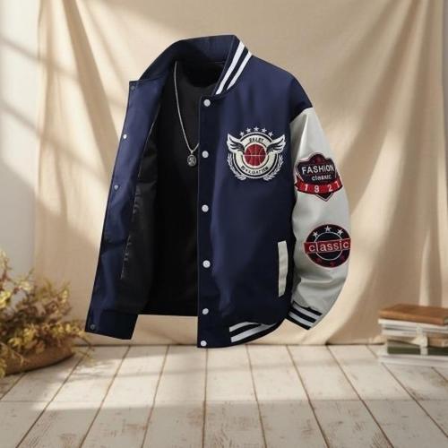 [옷자락]남성 캐주얼 레이어드 바시티 야구 점퍼
