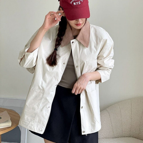 플러리싱 / 캐주얼 배색 카라넥 포켓 야상 자켓 플러리싱