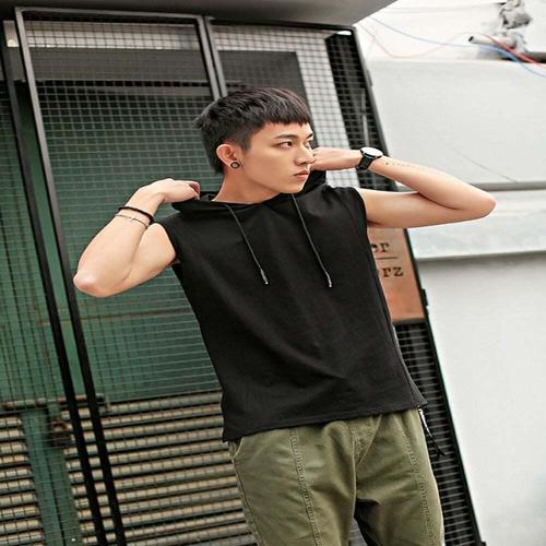 [셀럽하우스]여름 QOZD8833 민소매 남자 얇은 후드 나시 티셔츠