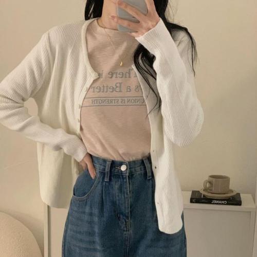 [샵앤][샵앤] 신상 여성 라운드넥 면100 무지 얇은 긴팔 맨투맨 티셔츠 DAI-WSH-12135-화이트
