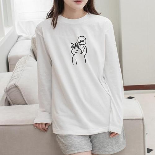 [옷자락]여자 편한 코튼 U넥 긴팔이너 얇은 필기체 티셔츠