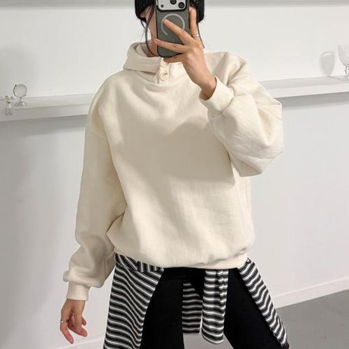 [신상오픈런]여성용 버튼 하이넥 겨울 후드 티셔츠 양기모 오버사이즈 (45899724)