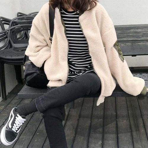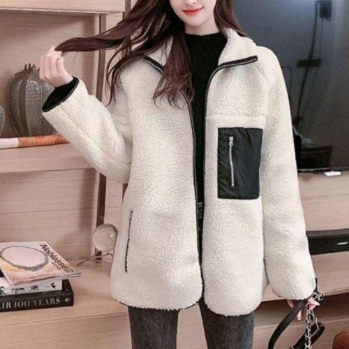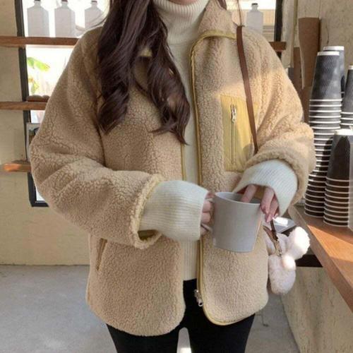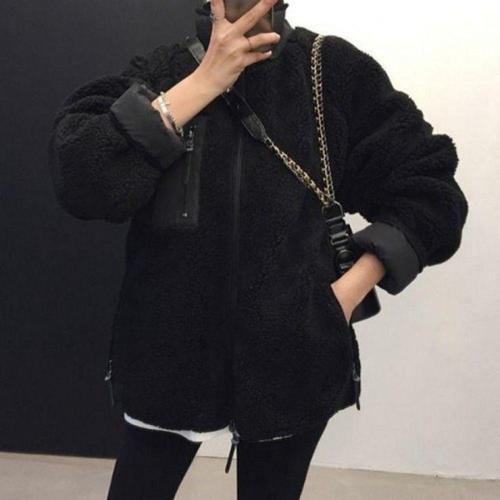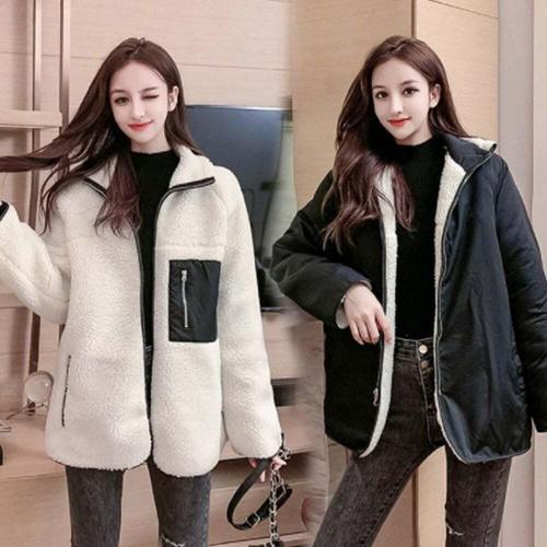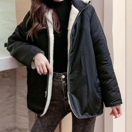 여성용 양면 플리스 안감 두꺼운 양털 코튼 재킷 아우터 겨울 신상 지퍼 여밈 긴팔