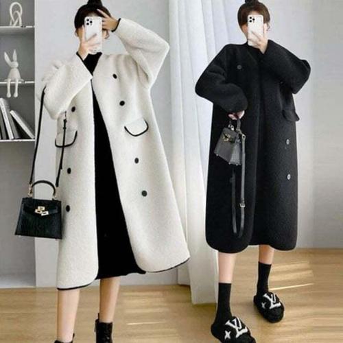 출근룩 [ ]라운드 양털 시어링 더블 버튼 롱 코트 (TX4CT009L0)