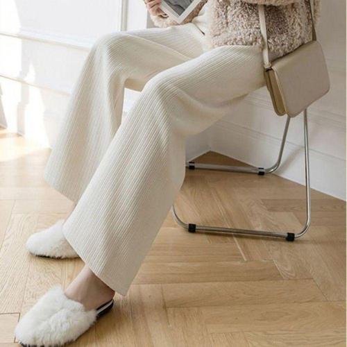 뽀글이 양털 기모팬츠 체크바지 밴딩바지 겨울 여자츄리닝 여성 와이드핏 일자