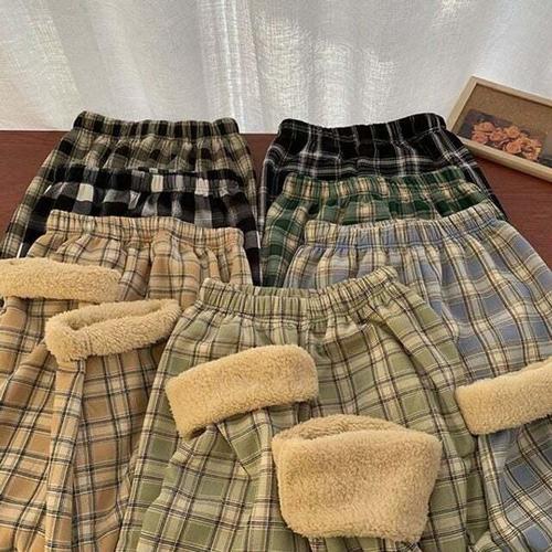 [오너클랜]인기상품 체크 패턴 보온 양털 겨울 팬츠 [WFLL08F_260304]