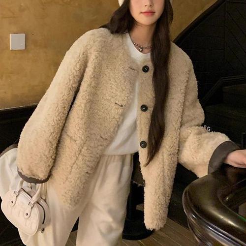 부드러운 양털 소재의 귀여운 뽀글이 카라 자켓 (WFJY7ZU)
