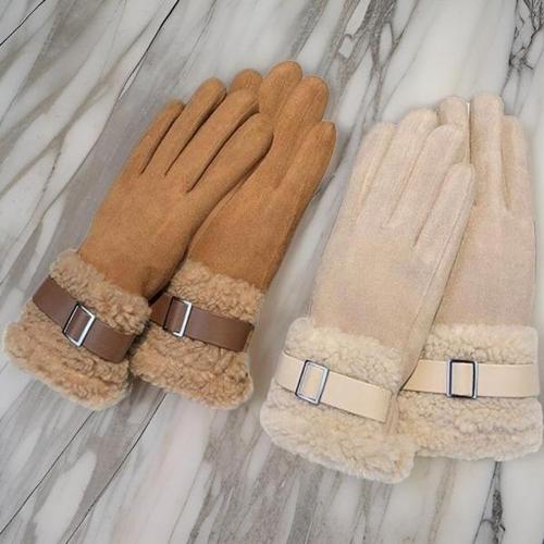 [다잇템][다잇템] 여자 세무 손목벨트 양털 보온 터치 장갑_19642272_588872