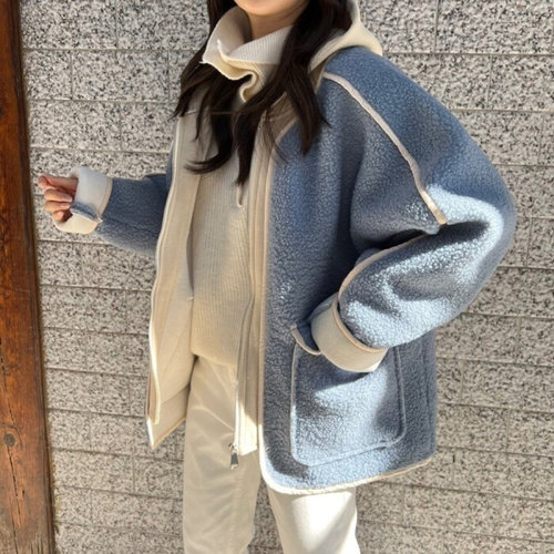 ANYOU 스웨이드 재킷 후리스 여성 겨울 루즈핏 무스탕 양털 겨울 신상 빅터틀넥 램스울코트 여오버핏BF풍 무스탕 일체형 라이더 자켓 붐