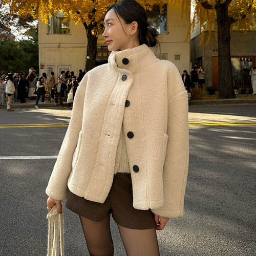 떳다그녀 소플리 뽀글이 덤블 오버핏 양털 스웨이드 안감 하이넥 겨울 데일리 무스탕 보아 퍼 자켓