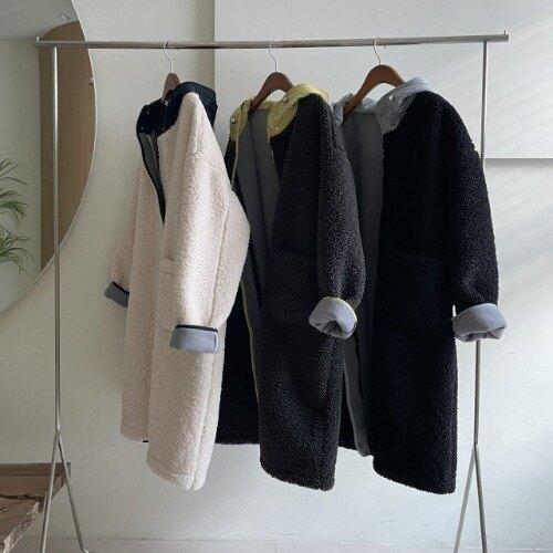 [옷자락]여자 떡볶이코트 Y2K 후드 뽀글이 양털 겨울 롱코트