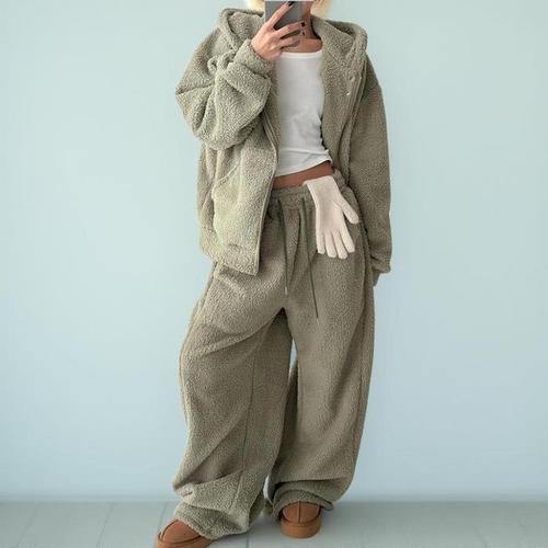 [신상오픈런]여성용 겨울 양털 후드집업 루즈핏 와이드팬츠 세트 (44011875)