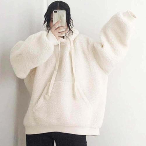 |KSTA0C1|여성 뽀글이 양털 후드티 겨울 오버사이즈 티셔츠