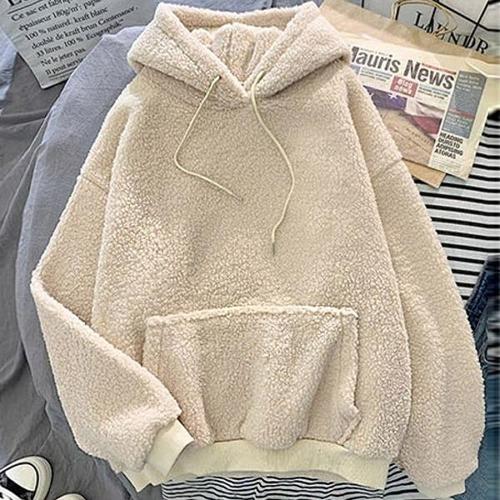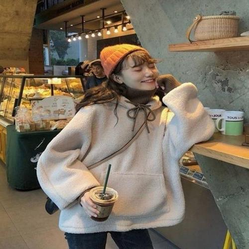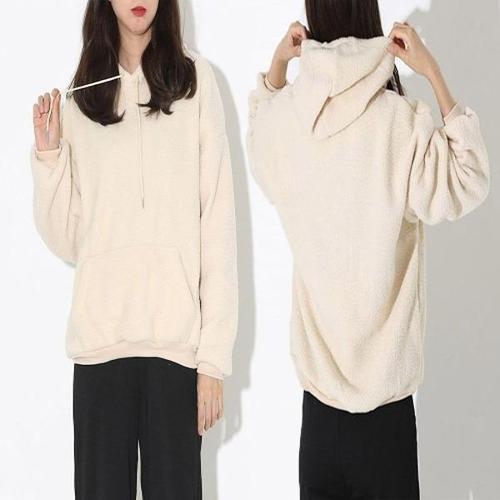 [엄지척]여자 무지 양털 뽀글이 후드 티셔츠 긴팔 겨울 오버핏_19600143_667501